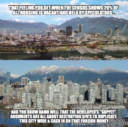 While it strikes a chord with your faithful scribes here at the Rainforest Roundtable, we do note a slight error in it. The census data show 26K vacant housing units in Vancouver, not 26% of all housing.